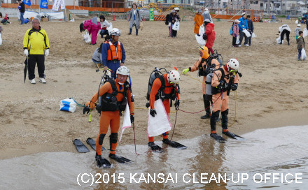 ![]() 海中クリーンアップ開始の様子です。